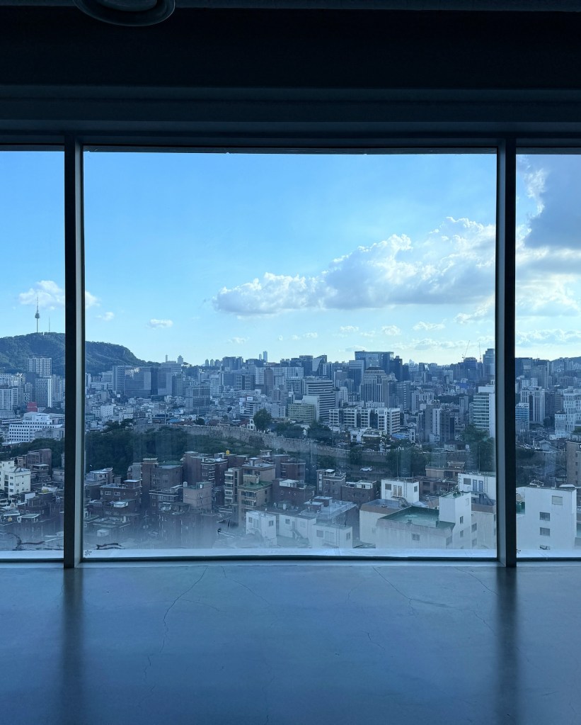 ソウルの高台にひっそり佇むカフェ。ルーフトップと大きな窓からは、まるで映画のようなパノラマビューが広がります。夕暮れの光に包まれて、時間がゆっくり流れます。
