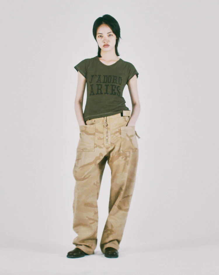 ARIES(エリーズ)は、クリエイティブ・ディレクターの SOFIA PRANTERA(ソフィア・プランテラ)によって設立された、誠実さと権威を備えたラグジュアリー・ストリートウェアブランドです。ストリートウェア、ゴミ文化、そしてアウトサイダー・アートへの愛から誕生したこのラベルは、CENTRAL SAINT MARTINS(セントラル・セント・マーチンズ)での修行を反映し、手染めやプリント、ハンドフィ니ッシュによる衣服構造に強いこだわりを持っています。態度は反体制的で、アプローチは PUNK(パンク)ですが、製品としては商業的な可能性を追求しています。独立資本による運営を維持しながら、独自のイラストレーション과ラグジュアリーな構造を融合させています。